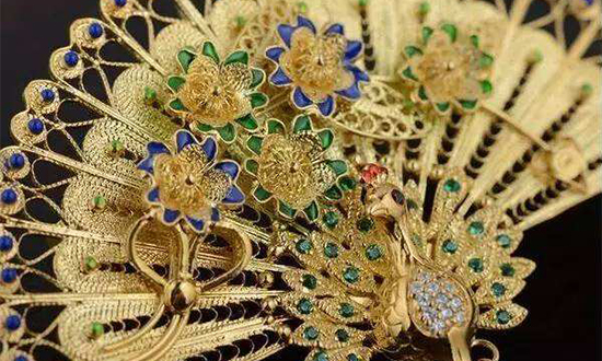 微镶、珐琅、点翠、花丝镶嵌、金银错等珍贵传统工艺制作的珠宝艺术品。